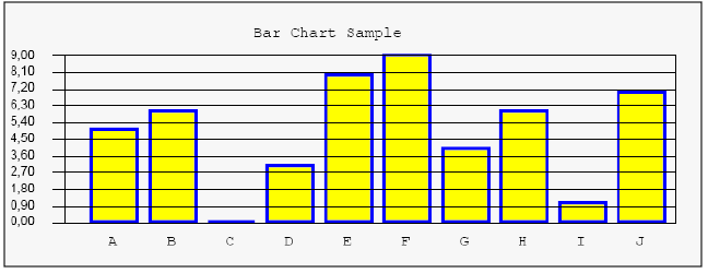 this will draw a bar chart with blue outlined bars and yellow fillings. See Demo.PDF for more details.